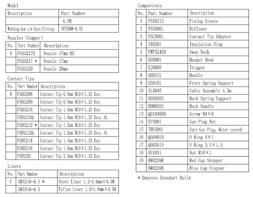 wires:Fe / SS / Al : diameter 1.6 mm,Flux Core Wire(FC) : diameter 2.0mm.