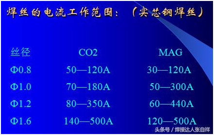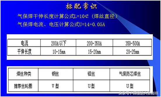 除了以上干伸長(cháng)度對焊接的要求以外,對于送絲輪的使用可以參照上圖,焊接碳鋼、不銹鋼等實(shí)心焊絲采用的送絲輪為V型,焊接鋁合金或藥芯焊絲等材質(zhì)較軟的焊絲可采用U型輪,如果選擇錯誤,可能會(huì )出現送絲不暢,參數匹配有誤等問(wèn)題,另外,對于焊絲來(lái)講,每一種焊絲都有其焊接范圍,比如,如果采用1.2Mm焊絲,要想焊接500A的電流,就是把調節電流放到最大500A,也只能出300多安的電流就是這個(gè)道理,要想焊到500A,只需要不絲徑加到1.6或更粗的焊絲即可。這也是防止焊機超負載使用的一個(gè)方法,比如采用60%占載率的氣保500焊機,如果長(cháng)時(shí)間焊接,那么根據公式就只能得出380A以?xún)瓤梢蚤L(cháng)時(shí)間焊接,為了避免焊工誤操作,可以選用1.2mm絲徑就不會(huì )出現超負載應用了,具體公式算法及焊絲需用電流表如下:
