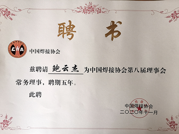 中國焊接協(xié)會(huì )第八屆一次理事會(huì )暨八屆一次常務(wù)理事會(huì ),中國焊接協(xié)會(huì )第八屆理事會(huì )監事會(huì )第一次會(huì )議于2021年4月17日上午在浙江省寧波市召開(kāi)。會(huì )議選舉產(chǎn)生了第八屆理事會(huì )主要負責人、常務(wù)理事及第八屆理事會(huì )監事會(huì )監事長(cháng),同時(shí)頒發(fā)了第八屆理事會(huì )各級領(lǐng)導、單位的資格證書(shū)及個(gè)人聘書(shū)。會(huì )議期間還組織召開(kāi)了中國焊接行業(yè)高質(zhì)量發(fā)展論壇。在本次會(huì )議中,北京時(shí)代科技股份有限公司當選為中國焊接協(xié)會(huì )常務(wù)理事單位,公司總裁鮑云杰當選為中國焊接協(xié)會(huì )第八屆理事會(huì )常務(wù)理事。