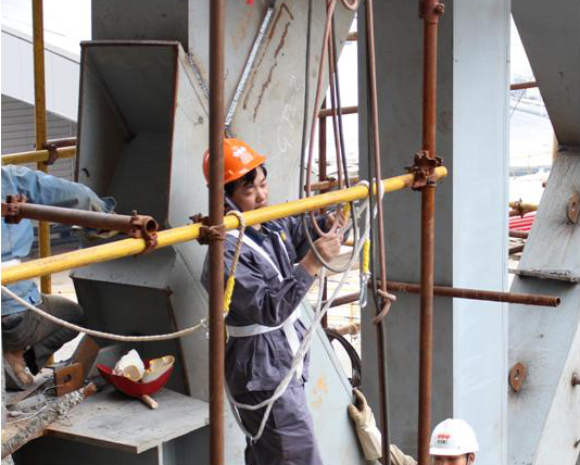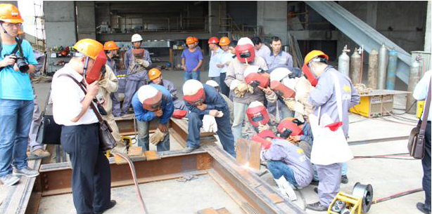 獻藝活動(dòng)結束之后,時(shí)代公司高級技師張自祥和另外兩名全國五一勞動(dòng)獎?wù)芦@得者在工地現場(chǎng)根據施工方的要求,還做了板對接橫焊、立焊和平焊示范演示,與承建方焊工師傅們進(jìn)行了面對面交流,掀起了新一輪學(xué)習、交流的熱潮。
