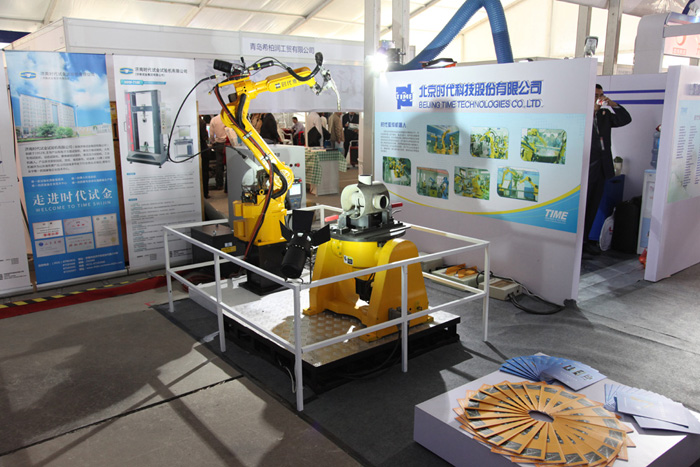 時(shí)代焊機作為職業(yè)教育領(lǐng)域的優(yōu)秀焊接設備供應商應邀參加了本屆展會(huì )。展會(huì )的展位都設置在組委會(huì )搭建的臨時(shí)性展棚中,時(shí)代展臺的位置在C館的中央。展會(huì )中只有三家企業(yè)與焊接專(zhuān)業(yè)相關(guān),時(shí)代是唯一一家專(zhuān)業(yè)焊接設備制造企業(yè),其余兩家都是焊接模擬培訓儀的廠(chǎng)家。時(shí)代的展品以全新TD系列焊機集控系統、弧焊機器人設備為主。為了展示時(shí)代焊機的焊接教學(xué)系統解決方案,公司按真實(shí)尺寸1:1復制了焊接實(shí)操工位。工位里包括標準除塵系統、數字化焊接電源、焊機支撐架、多功能焊接操作架、監控探頭、氣瓶架及氣瓶、工具柜、槍掛鉤等,與真正的教學(xué)工位一模一樣。許多從事焊接教學(xué)工作的校長(cháng)、老師對時(shí)代焊接實(shí)操工位很感興趣,大家仔細觀(guān)摩并詢(xún)問(wèn)了不少細節問(wèn)題。大家紛紛評價(jià)時(shí)代的工位實(shí)物展示全面細致,令人耳目一新。工位外四套時(shí)代焊機聯(lián)網(wǎng)組成的集控系統同樣吸引了大家的目光,老師們紛紛詢(xún)問(wèn)該系統在實(shí)際教學(xué)和生產(chǎn)中的實(shí)際意義和用途,對時(shí)代新型焊機的外觀(guān)也大加贊賞。最吸引觀(guān)眾目光的還是時(shí)代弧焊機器人系統,本次展示包括機器人本體和小型變位機一套。機器人配合變位機焊接零件的過(guò)程,動(dòng)作靈活準確。為了強化展出效果,展臺上布置了兩盞大功率的射燈將機器人照亮,耀眼的燈光將時(shí)代機器人高精度、高智能的風(fēng)范勾畫(huà)得淋漓盡致。老師們對機器人的價(jià)格十分關(guān)心、同時(shí)還咨詢(xún)了不少教學(xué)系統編程問(wèn)題。